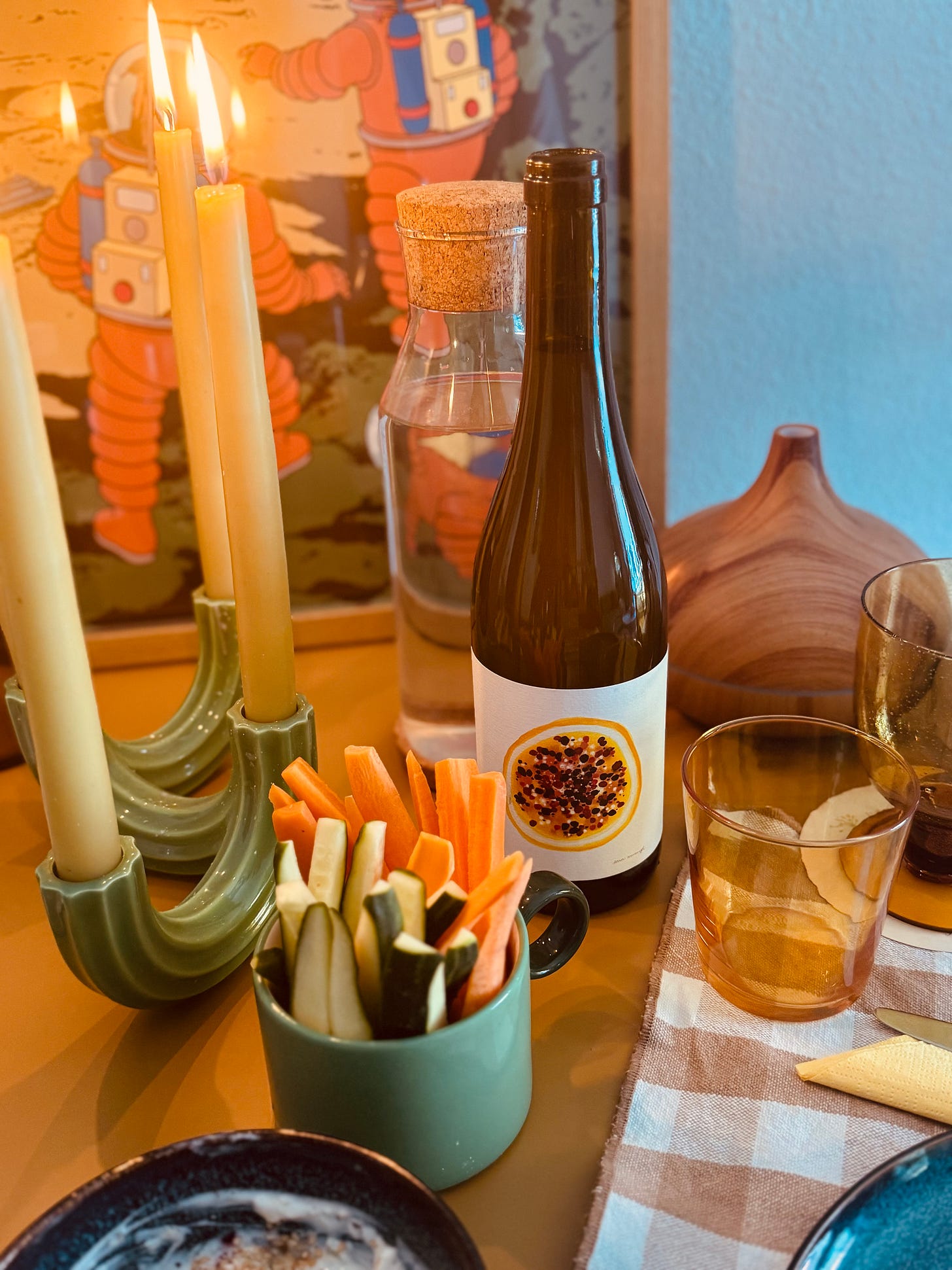 Llegó un poco tarde y en lugar de traer postre, vino con el vino que siempre quise probar (solo juzgándolo por su etiqueta pintada a mano). No me (se) equivoqué (ó).