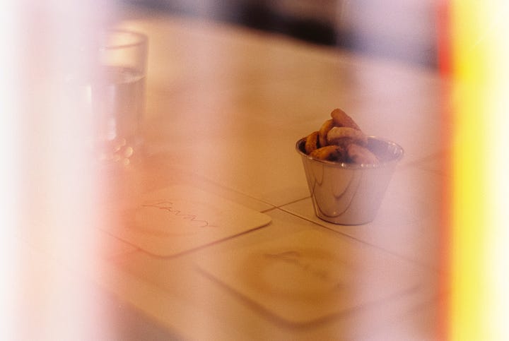 Comimos las arepas, terminamos el vino, y nos invitamos mutuamente a tomar el postre a una de mis heladerías preferidas, Mares. Hablamos con el dueño sobre Puerto Madryn, Mar del Plata y el cardamomo con chocolate. Le dije a Abi de salir a caminar sin rumbo y terminamos tomando un vermut en una terraza en Olavide. Se mudó hace unos cuantos meses a Madrid, pero todavía no conoce ni se orienta tanto. Me dijo que le gustaba conocerla a través de mí. Le dije que le quería mostrar mi bar preferido, que había descubierto gracias a Simón, y fuimos caminando por una Madrid bien vacía de Agosto hacia el sur.